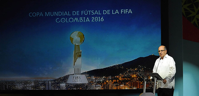 La Copa Mundial de Fútsal se disputará en el país entre el 10 de septiembre y el 1 de octubre de 2016; reunirá a las 24 mejores selecciones del mundo en una competencia que se realizará en Cali como sede de la selección Colombia, además de los actos inaugural y de clausura; Medellín, Bucaramanga e Ibagué, serán las otras ciudades sede de este mundial.