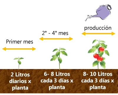 De segundo a cuarto mes 6-8 itros cada 3 días por planta.