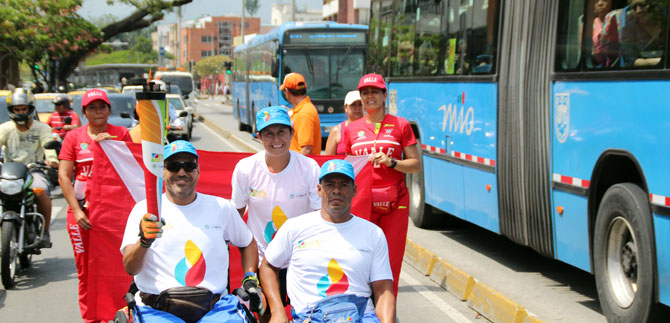 En el parque Panamericano, Bernando Sánchez, gerente de Indervalle, dio inicio el trayecto donde participaron los deportistas de alto rendimiento, entregando el Fuego Deportivo a Fernando Aguirre y Héctor García, atletas en situación de discapacidad.