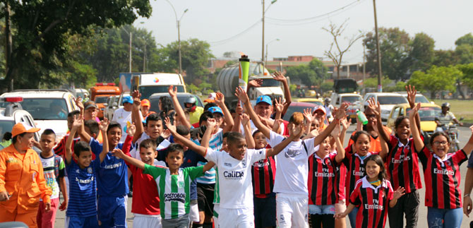 El recorrido continúo por el puente del comercio y siguió a la calle 70 hasta llegar a las diferentes estaciones, ubicadas en el puente de Los Mil Días, barrios las Acacías y Parque Junín, en los cuales el Fuego Deportivo fue recibido por los niños de los Centros de Iniciación Deportiva, los promotores deportivos y la comunidad en general.