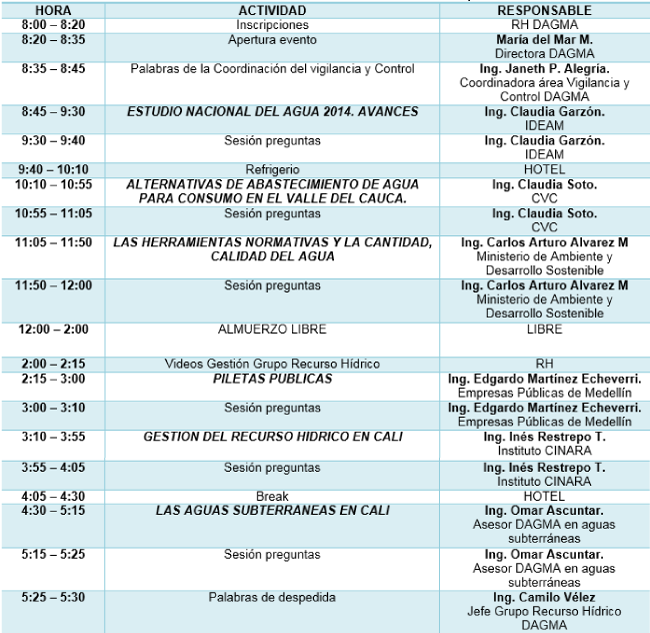 Socialización de trámites, control y seguimiento de las aguas subterráneas en el área urbana de Santiago de Cali, presentación de Programas de Uso Eficiente y Ahorro del Agua (PUEAA).