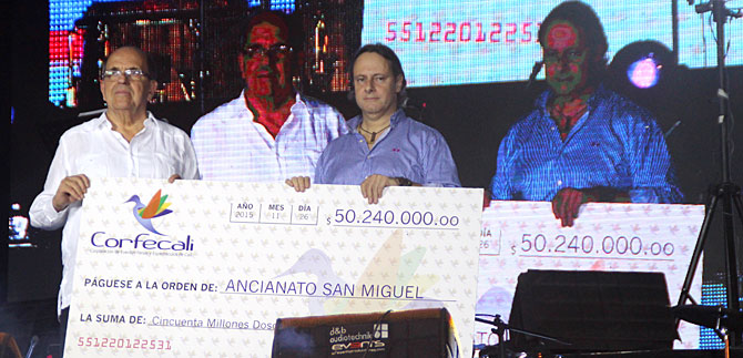 Posteriormente el mandatario caleño hizo entrega del cheque por $6 millones al ganador del diseño del afiche ganador Alexánder Arenas Albán.