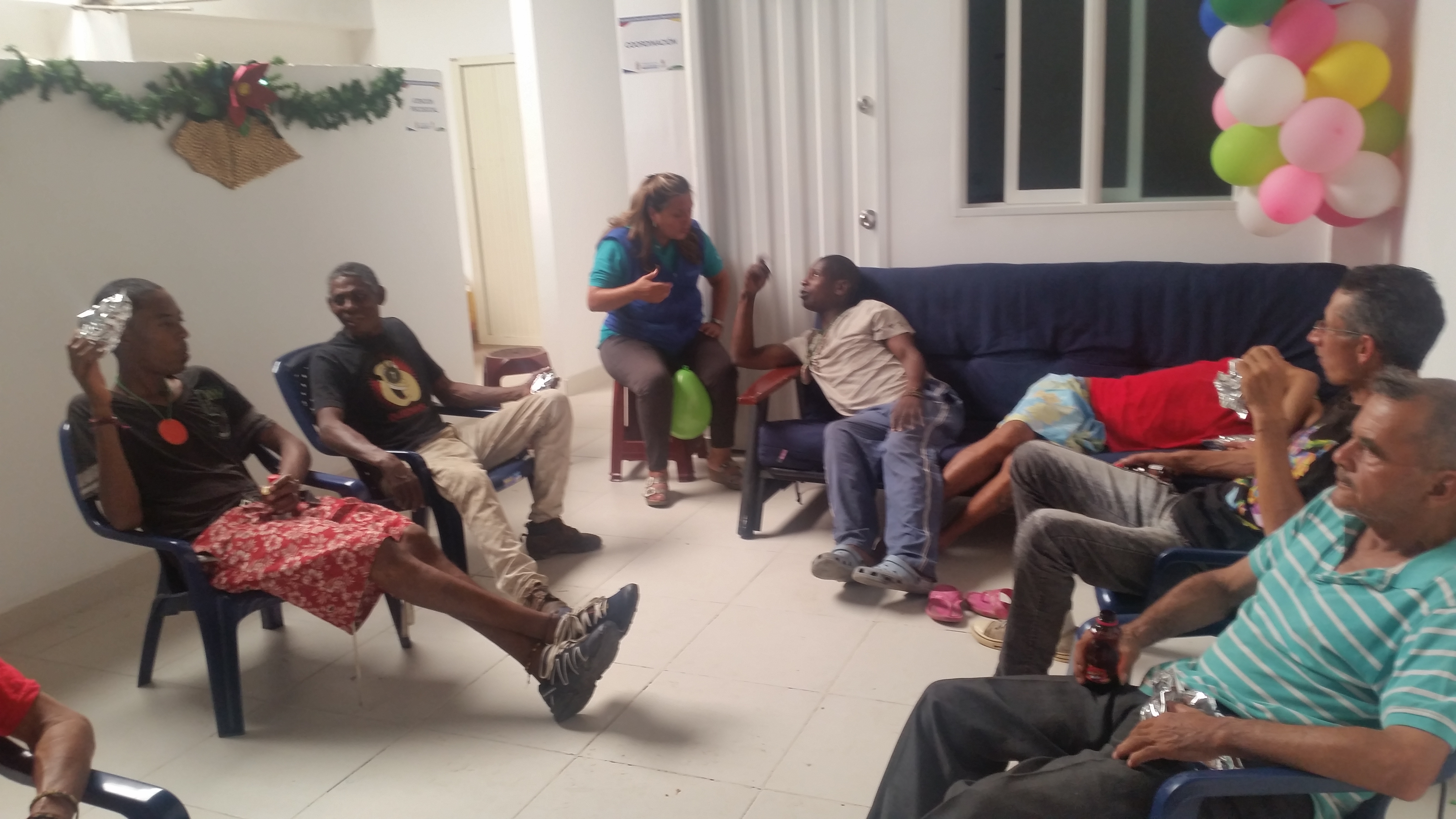 El lugar de acogida ofrece atención en: alimentación (desayuno, almuerzo y comida), salud, registro de Sisben, atención psicosocial, e igualmente les permite a los beneficiarios bañarse y realizar actividades de higiene personal.