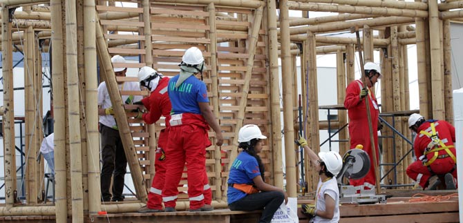 Estudiantes, docentes y obreros se pasean de un lado a otro por el Solar Decathlon Latin America & Caribean Cali 2015, cargando diferentes materiales con los que dieron inicio a la construcción de las casas que mostrarán en este evento de talla internacional que se tomó a la capital vallecaucana.