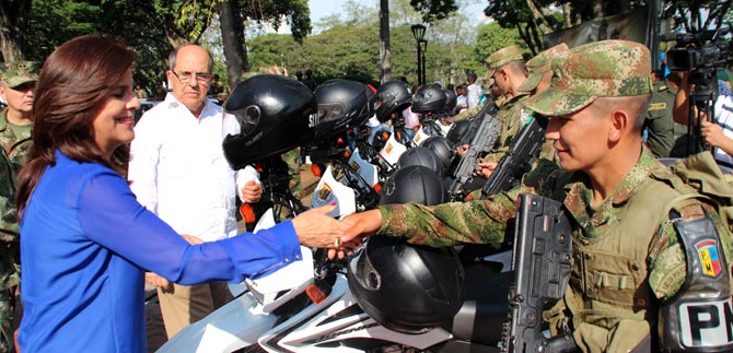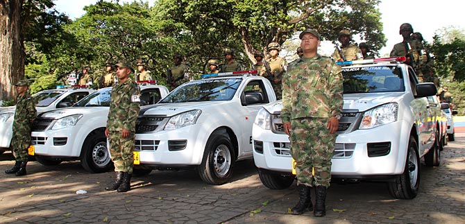 Con una inversión de $1242 millones, el gobierno de Santiago de Cali entregó 10 camionetas, 2 automóviles y 30 motocicletas al Batallón de Policía Militar, general Eusebio Borrero Costa.
