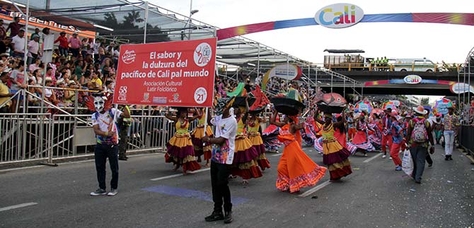 2100 artistas participaron de este evento, declarado Patrimonio Cultural Inmaterial del Municipio de Santiago de Cali, compuesto por 30 comparsas tales como el grupo ‘Rumbalé’ que demostró la dulzura del Pacífico; ‘Latir Folclórico’ y el grupo ‘Herencia Africana’ con la fuerza de sus tambores marimbas y clarinetes; ‘Raíces de Colombia’ danzó con marionetas, mientras la agrupación ‘Palenque’, con su usual vestuario, antojó a los caleños de las frutas típicas de la región.