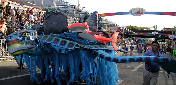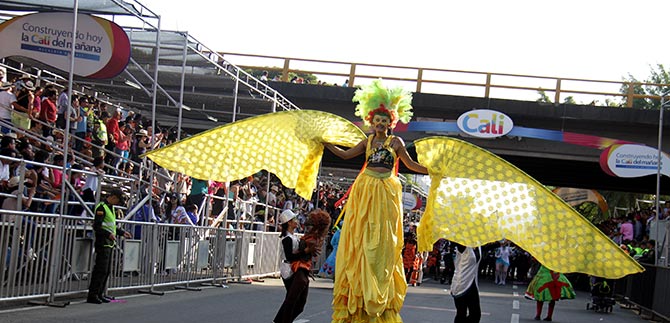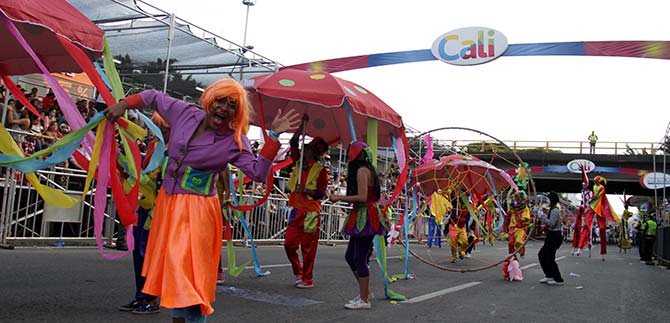 La ‘Murga Chamánica’ apareció con sus mandalas y la Fundación Estímulos representó un jardín danzario lleno de los colores del arcoíris, seguidos por el grupo ‘Yanacanái’ que exploró la obra del maestro Hernando Tejada. Las bailarinas convertidas en marionetas también se tomaron la autopista, rindiendo homenaje a la gente que se goza la Feria de Cali. Igual participación tuvieron los diablitos y personajes insignes de Cali.