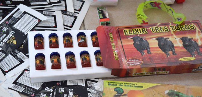 Productos para la diabetes, para gimnasio, quemadores de grasa, potencializadores sexuales, entre otros, hacían parte de los 351 tipos medicamentos decomisados. Además se encontraron medicamentos utilizados para enfermedades huérfanas o raras que estaban próximos a vencer. Estos productos vuelven a ser empacados, por lo que las persona que los consumen lo hacen pensado que les va a servir para la enfermedad, pero el efecto es cero” añadió el Secretario de Salud.