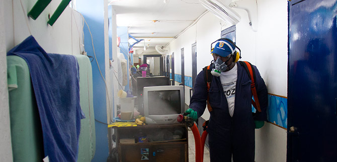 Las actividades se cumplieron al interior de la penitenciaría, pero igualmente en un radio de 100 metros que también debe quedar libre del zancudo para garantizar que el insecto no regrese a la zona intervenida. Es por eso que más de 500 funcionarios de la Secretaría visitaron casa a casa más de 3.500 hogares en los seis barrios aledaños a la cárcel. Allí se realizaron actividades como fumigación, siembra de peces en sumideros y eliminación de criaderos del zancudo, es decir, depósitos de agua estancada.