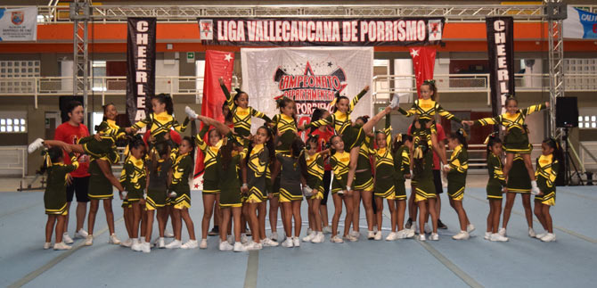Al ritmo de porras combinados con saltos, acrobacias y movimientos enérgicos y bien marcados, porristas pertenecientes a diferentes colegios del Valle y Cali, emocionaron al público y padres asistentes al I Campeonato Departamental Intercolegiado y Universitario de Porrismo que se llevó a cabo el Coliseo Evangelista Mora.
