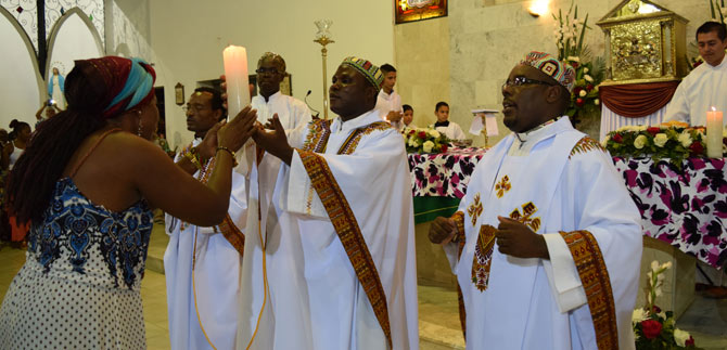 Con ofrendas de frutas, pan y vino, además de cantos típicos afrodescendientes fue celebrada la misa que dio inicio oficial a la semana de la afrocolombianidad en Cali.