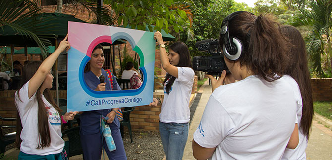 “Uno de los propósitos del Alcalde de Cali, Maurice Armitage, es que toda la ciudad se contagie de Cali Progresa Contigo, en esta  perspectiva los estudiantes de comunicación de la Universidad Javeriana se han unido para difundir  el mensaje,  despertado el papel que deben jugar los jóvenes en temas que llevarán a la  transformación social de la ciudad, construyendo de manera colectiva” señalo Carolina Campo, Asesora de Cultura Ciudadana.