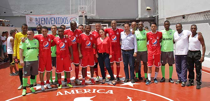 Entre paredes, pero bajo un imponente sol, Jorge Banguero, los hermanos Carlos y Luis Asprilla y el “Guama” Cardona,  entre otros, se mezclaron en dos equipos con los reclusos para estrenar una cancha de microfútbol en el centro penitenciario. Para Jorge Banguero, ex jugador del América “este es un excelente modelo que verifica que el ejemplo, comienza por casa. El fútbol es un juego que no debe desencadenar violencia… es un llamado a las barras bravas a disfrutar sin agresión”.