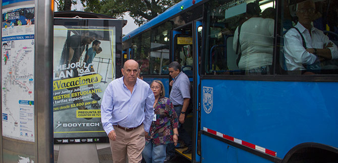 A los 5 minutos llegó la ruta A01 que finalmente lo llevaría al CAM. En el bus muchos espontáneos le pidieron que repitiera el ejercicio en la tarde.