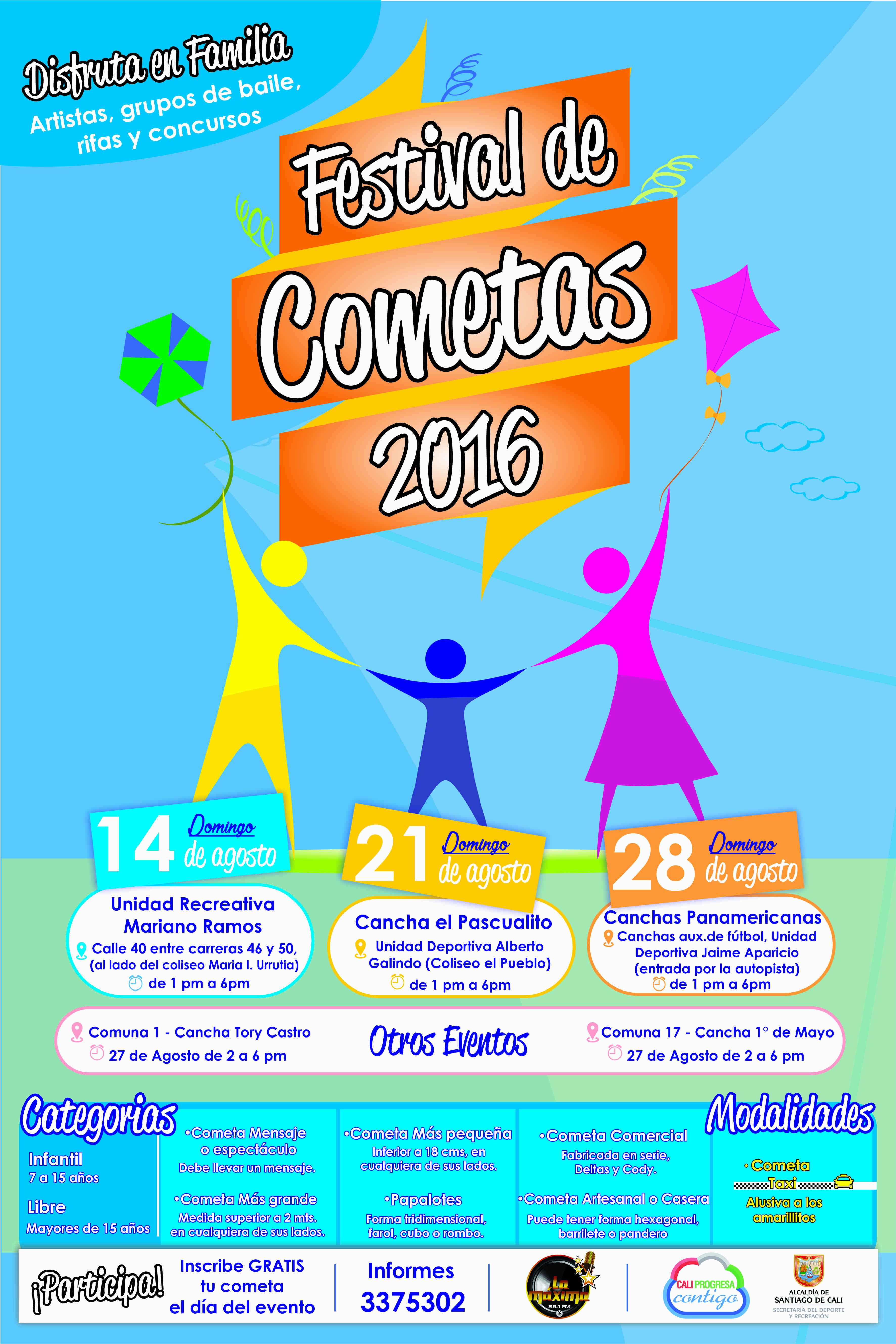 Los domingos 14, 21 y 28 de agosto a partir de la 1:00 p.m. hasta las 6:00 p.m. la capital del Valle será escenario del Festival de cometas 2016, para que disfrutes en familia y con amigos de artistas, grupos de baile, rifas y concursos.