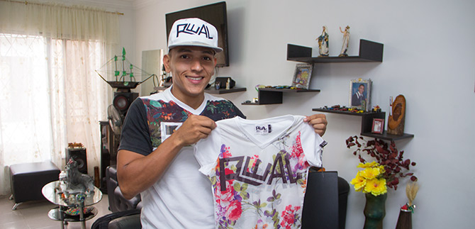 Jean Carlos Ramírez es un joven de 24 años habitante del barrio Calimio Norte de la comuna 6, creador de la microempresa de ropa urbana Real Moda 3d, diseñador gráfico profesional, además egresado de El Sena, dice que va a aplicar a la financiación para ampliar su negocio y poder crecer, “ yo creo en el emprendimiento, es una oportunidad no solo pensando en enriquecerse, sino en brindarle oportunidades a la gente de mi comuna que tanto lo necesita”, su negocio es de ropa en una fibra resistente, que no se deforma ni se pica con el tiempo, además estampados con mensaje social, ahora vende a través de redes sociales, pero espera contar con su propio almacén.