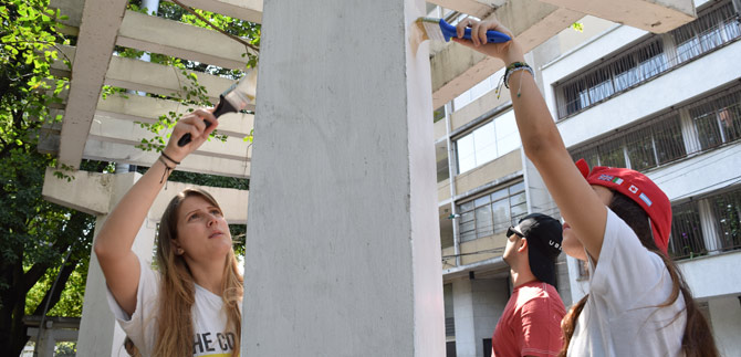 Ximena Zamorano, de la Oficina de Coordinación Social, dijo que ¨ Locos por Cali¨ es un grupo de jóvenes que vienen trabajando por la ciudad y hoy se han reunido para pintar las pérgolas y barandas del río, con una donación que recibieron de una persona que se ganó el concurso Por Cali Lo Hago Bien.