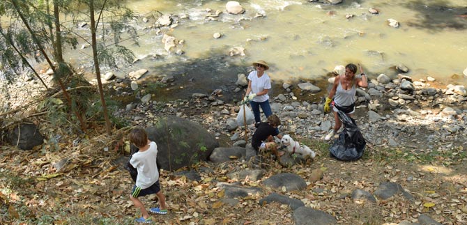 Un grupo de jóvenes ¨Locos por Cali¨ preocupados por ver a la ciudad bonita adelantaron en la mañana de este domingo una jornada de enlucimiento y de limpieza de la ribera del Río Cali por el sector del Gato de Tejada.