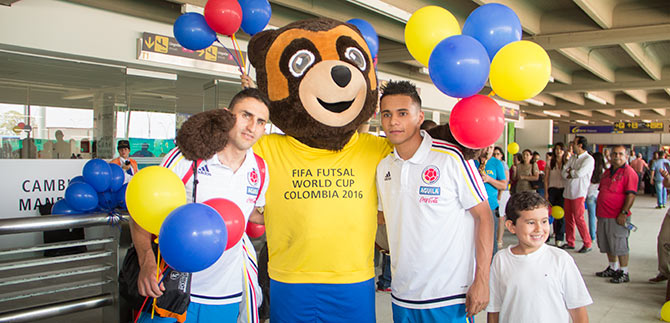 Ya está en casa el equipo de los 14 chicos que representarán a Colombia en la Copa Mundial de fútsal de la FIFA 2016. Su vuelo arribó procedente de Bogotá, al aeropuerto Alfonso Bonilla Aragón a eso del mediodía.