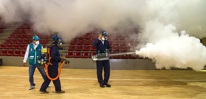 El secretario de Salud de Cali, Alexander Durán, encabezó los operativos de fumigación e intervención de sumideros para evitar la proliferación del zancudo en los escenarios del Mundial de Fútsal en Cali. La jornada tuvo lugar en el coliseo El Pueblo, sede principal de las competencias, pero igualmente en los coliseos alternos como el de la Universidad del Valle y Mariano Ramos.
