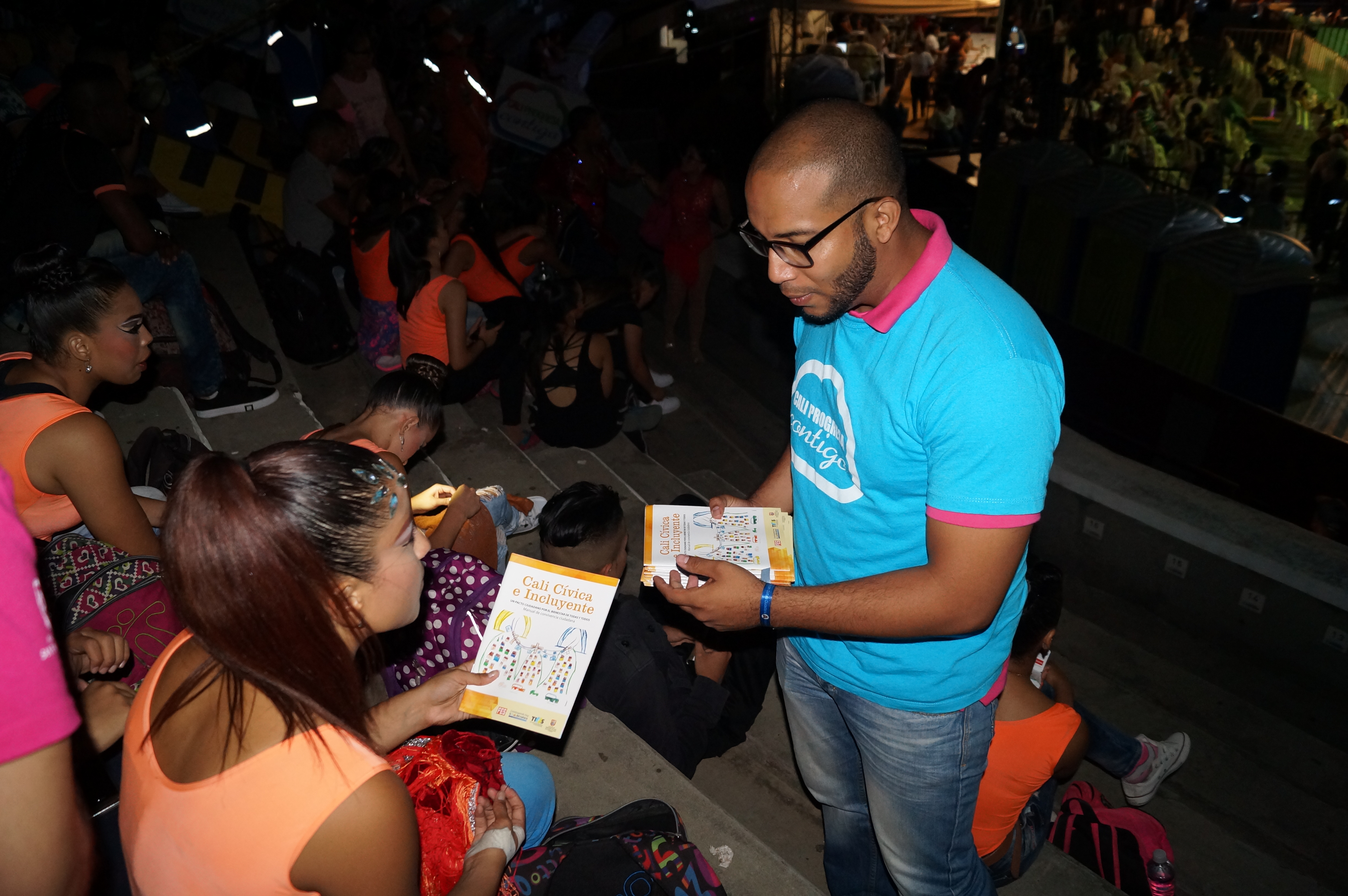“Estamos invitando a  todos los asistentes  al Festival Mundial de Salsa para  que seamos cívicos y construyamos juntos la Cali que progresa con su gente,  promoviendo  una sana convivencia”, señaló Paola Arboleda, profesional de  la Asesoría de  Cultura Ciudadana de Cali.