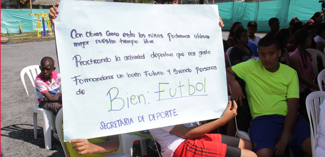 Para el secretario de Deportes, los espacios deportivos son territorios de Paz y la paz empieza por entendernos, todos somos diferentes y el deporte es un espacio donde debe imperar el respeto por nuestros profesores, compañeros y rivales. Además el respeto y el amor por nuestros escenarios deportivos, cuando los cuidamos estamos contribuyendo al bienestar de todos y eso es paz.