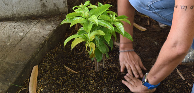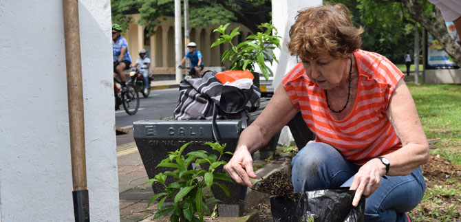 Los funcionarios del Dagma liderados por su director Luis Devía Rodríguez, explicaron el paso a paso para sembrar las plantas, esta vez la copa de oro, que al crecer se enredaran en las pérgolas, creando un cerco vivo que además de embellecerlo lo oxigenará.