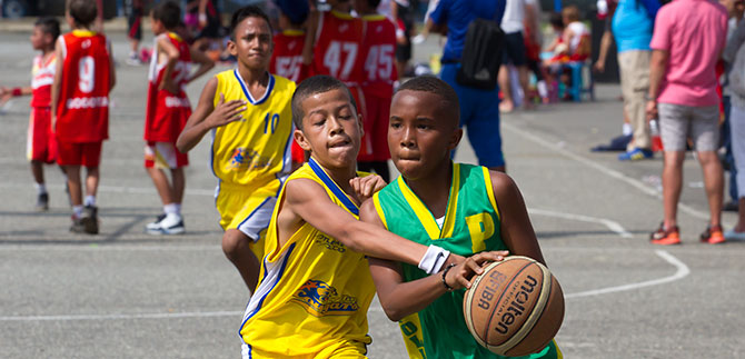 El profe Jaminson Moreno viajó desde Quibdó por tierra con sus 21 chicos. Fueron 10 horas de viaje, con uno que otro mareo que pasó a la historia apenas llegaron a Cali; que no importó más cuando sin pensarlo dos veces, se gozaron una y otra vez la piscina de olas del Parque de la Caña. Son uno de los equipos que más veces ha participado en el festival de mini baloncesto, que ya alcanza su décima versión. “Los niños están súper felices y entusiasmados. En nuestra tierra tenemos un solo coliseo bajo techo. No hay otro sitio donde entrenar bien. A ellos les ha llamado mucho la atención ver tantos y distintos escenarios deportivos en tan buenas condiciones”, resalta Moreno.