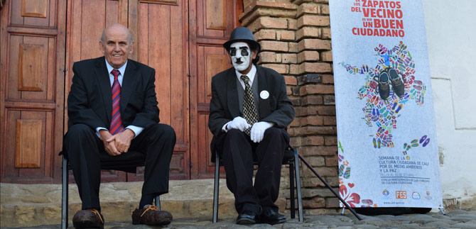 “Ponerse en los zapatos del vecino es ser un buen ciudadano” es el lema de la semana de la cultura ciudadana por el medio ambiente y la paz y eso lo entiende muy bien Maurice Armitage, Alcalde de Cali, quien se puso en los zapatos de Chaplin, para mostrarle a las personas que la cultura ciudadana también se hace cuando entendemos las situaciones de los otros.