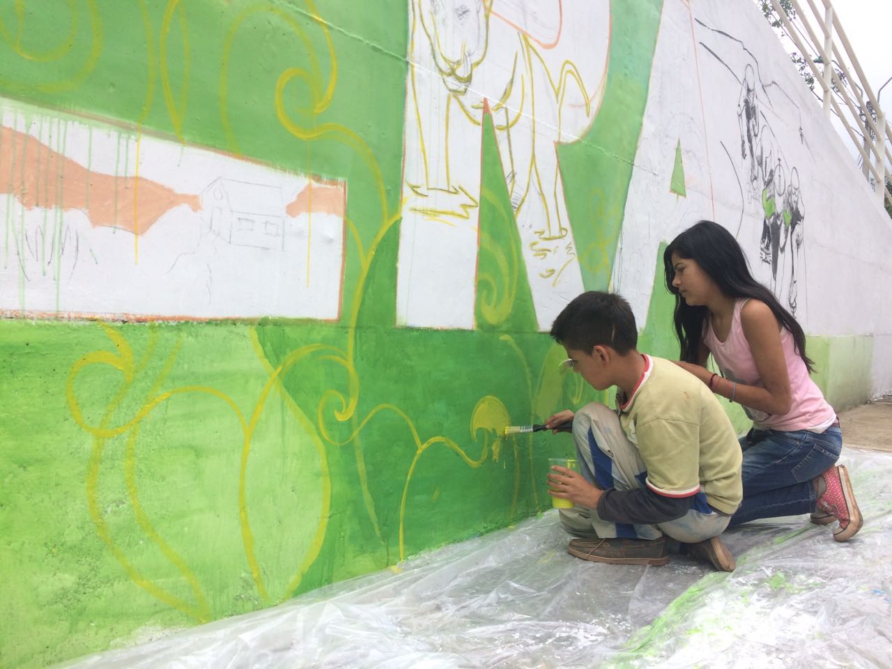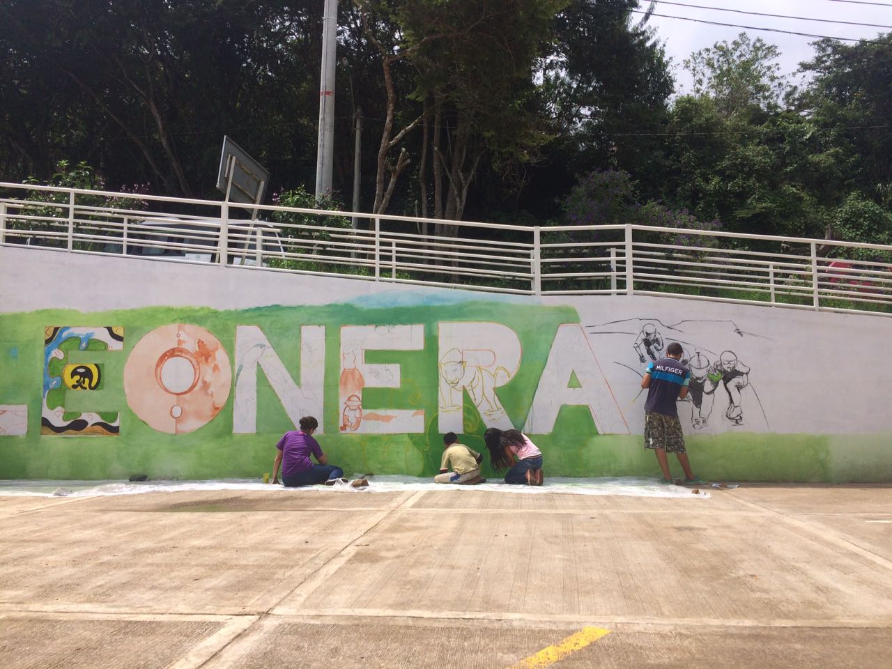 En el marco de la semana de la Cultura Ciudadana por el Medio Ambiente y la Paz, los habitantes de la Leonera, corregimiento de Santiago de Cali, pintaron un mural donde resaltan la naturaleza, su gente y el longboard, deporte extremo que se hace con patineta, aprovechando la pista de curvas que tienen en este territorio.