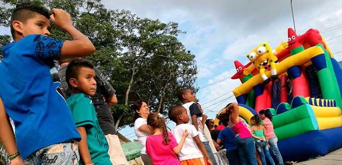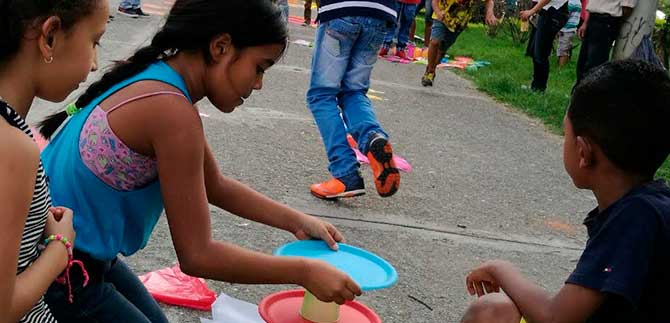 En el barrio El Pondaje, ubicado en la Comuna 13 al oriente de la ciudad, se brindaron diversas ofertas recreativas, como juegos coreográficos, juegos predeportivos de precisión, de obstáculos, entre otros, a fin de incentivar la movilización social y para que la comunidad pueda acceder a ellos libres de barreras y en convivencia armónica.