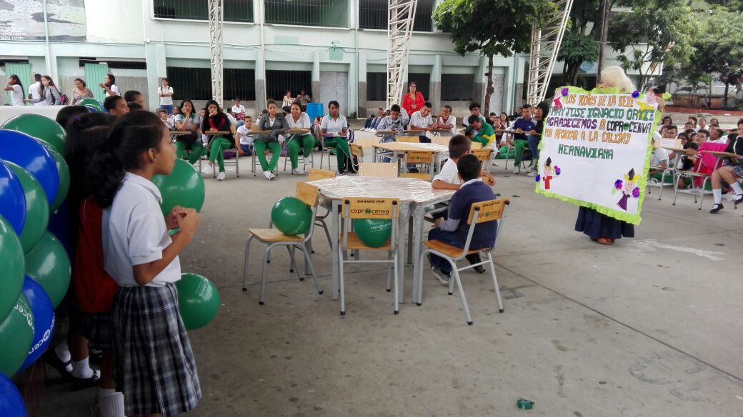 En esta oportunidad, la Institución Educativa Oficial Hernando Navia Varón fue la beneficiada de la entrega de mobiliario escolar avaluado en 37 millones  de pesos representados en 50 mesas trapezoides con 150 asientos, 250 sillas universitarias y un video beam, entregado por la cooperativa de trabajadores Cooprocenva.