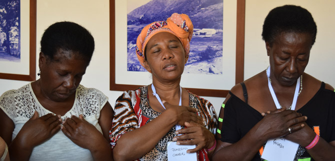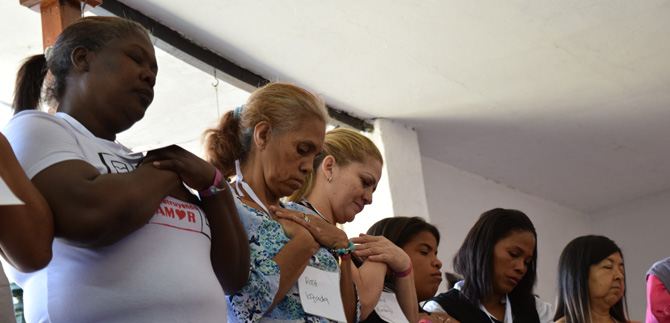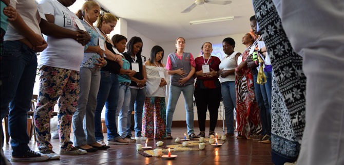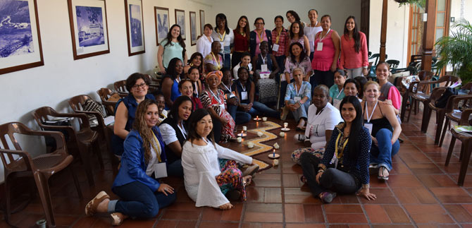 Mirar a los ojos. Sentir una mano amiga. Dar la vuelta y retornar con confianza. Abrazar y reír alrededor de una mandala  que evoca la vida y la naturaleza. Encender el fuego de la paz y de la reconciliación desde lo más profundo del ser y desde la voz de la mujer.