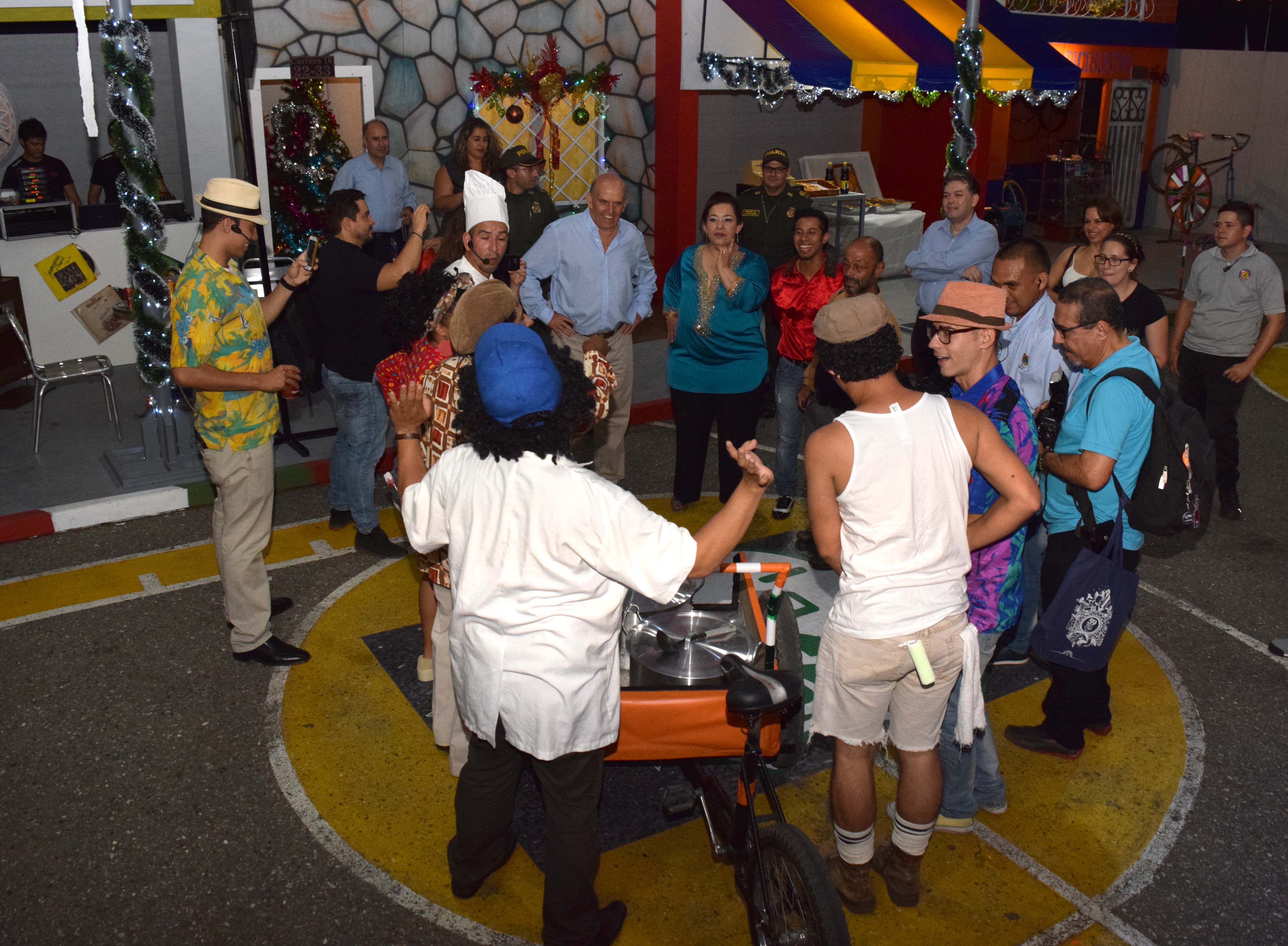 Caminando por una maqueta a escala real de un tradicional barrio caleño, donde había peluquería, panadería, fuente de soda y heladería, entre otras, el alcalde Maurice Armitage señaló que “en este 2016, el fastuoso jolgorio que se desarrollará entre el 25 y el 30 de diciembre próximo, quiere mostrar a propios y visitantes, todas las vivencias, el sentido de pertenencia y de caleñidad que comparten vecinos y amigos, siendo a su vez un espacio que acoge, que incluye”.