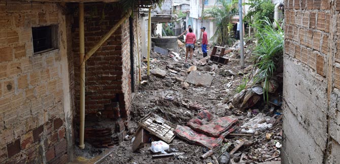 Cuadrillas de Infraestructura, de Emcali y organismos de socorro, trabajan en el sitio de la tragedia que se presentó este jueves al medio día  por el vendaval. El personal encontró andenes levantados, muros agrietados y humedades en las viviendas, también escorrentías tapadas por basuras y conexiones irregulares de acueducto.