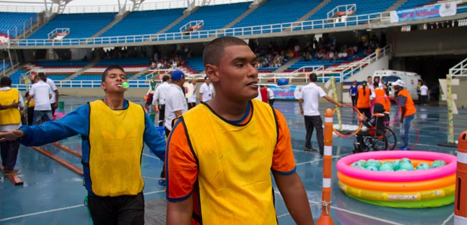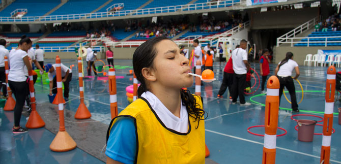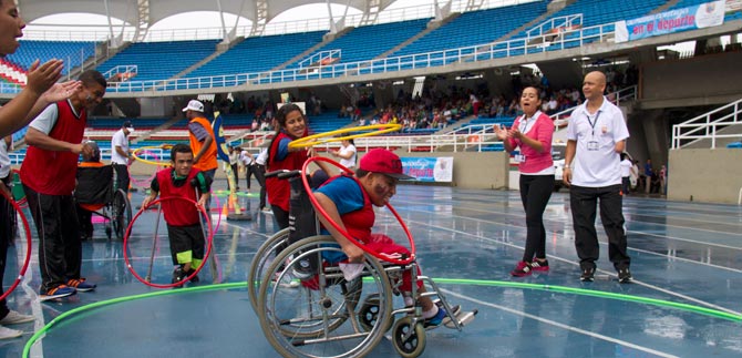 Pruebas de arrastre, de fuerza, de encestar balones y aros, fueron parte de las pruebas que superaron jóvenes y adultos en situación de discapacidad durante el acto de clausura del programa Calintegra, liderado por la Secretaría del Deporte y Recreación Municipal.