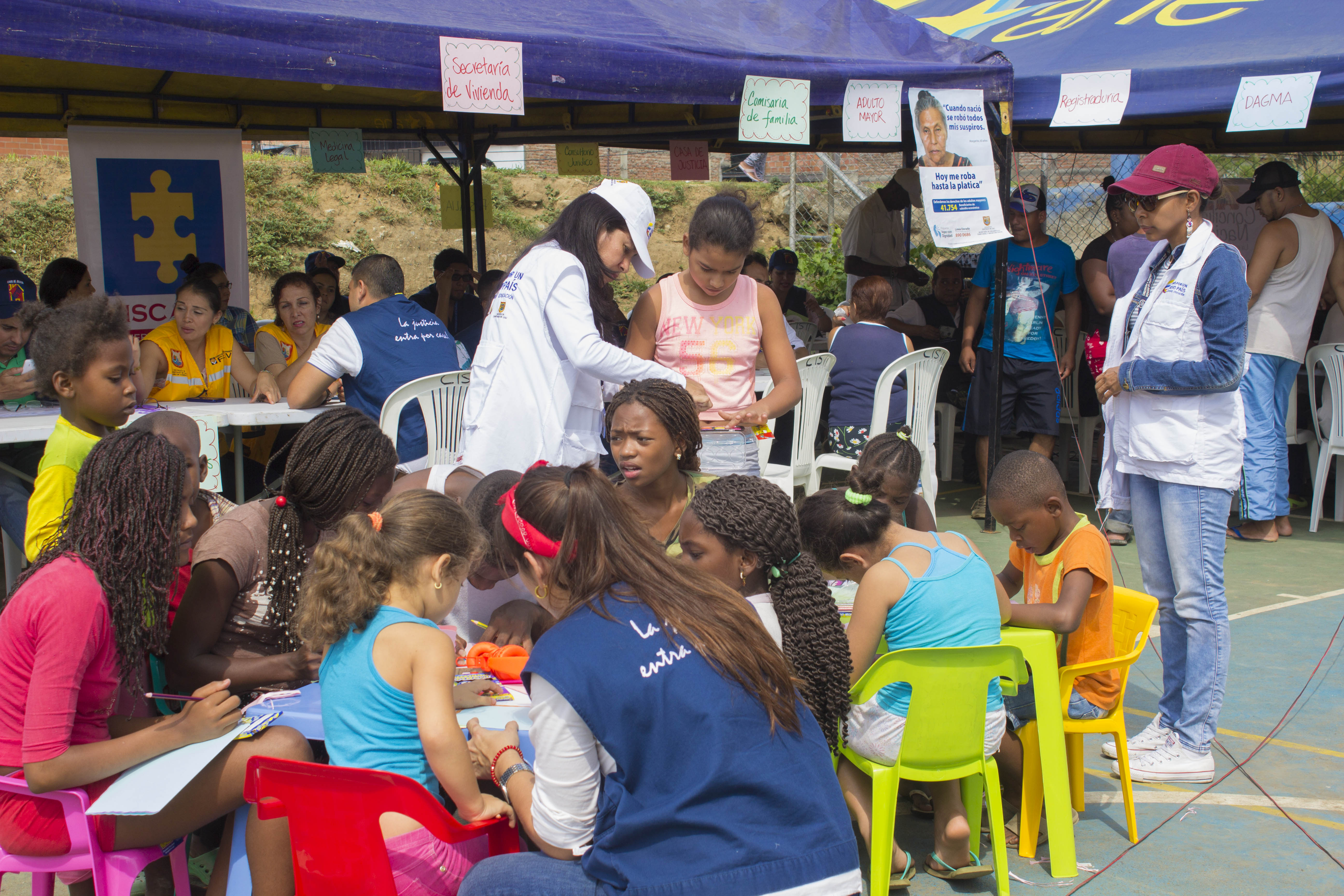El Plan Jarillón de Cali lideró una feria de servicios en el asentamiento Puerto Nuevo el pasado 6 de diciembre de 2016, con el objetivo de brindar información, orientación y facilitar el acceso de los habitantes de esta población que yace sobre el dique que protege a la capital del Valle de una inundación del río Cauca, a los programas que ofrece la Alcaldía Municipal de Santiago de Cali.