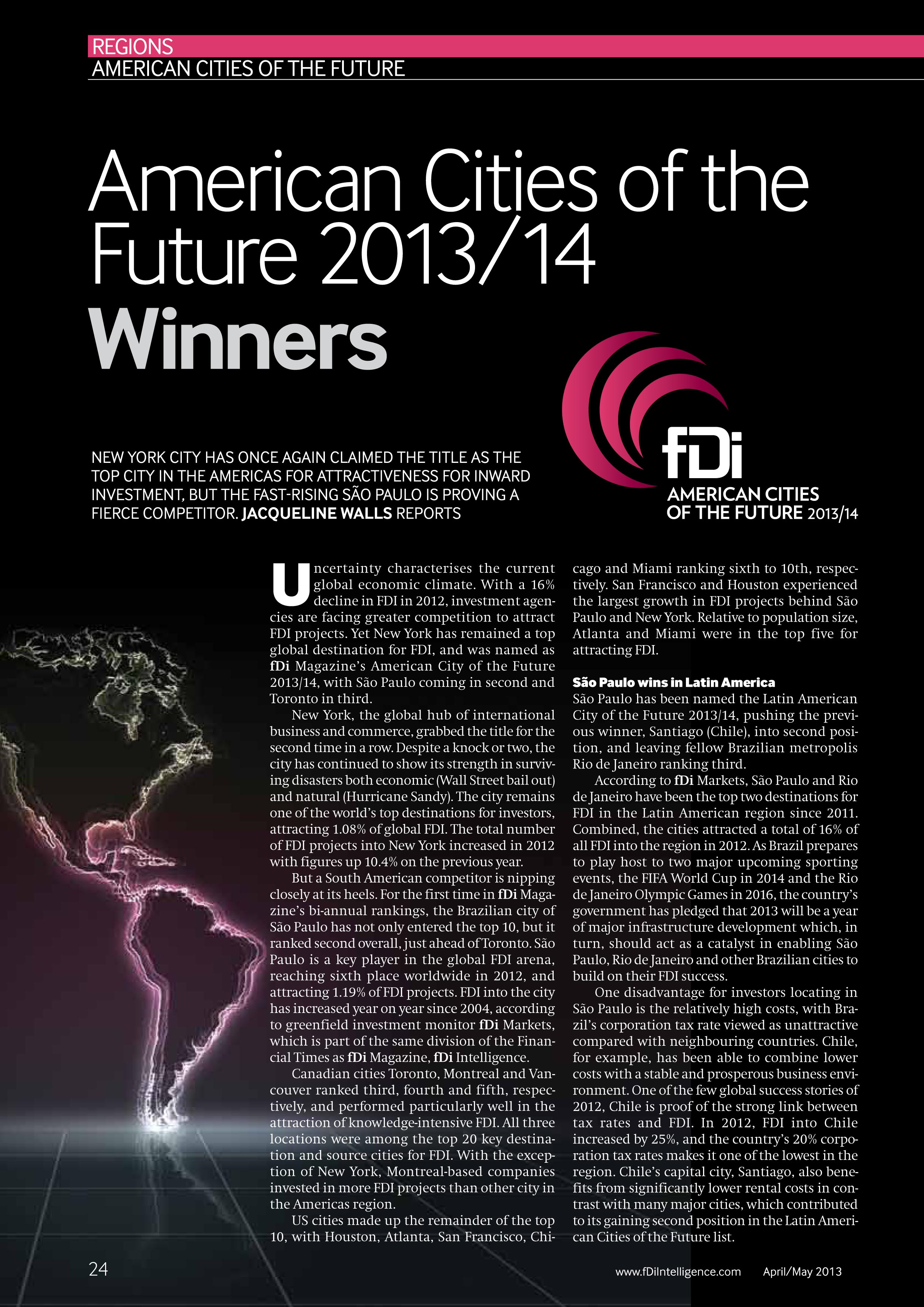 El documento de FDiIntelligence se puede encontrar en: http://www.fdiintelligence.com/Locations/Americas/American-Cities-of-the-Future-2013-14