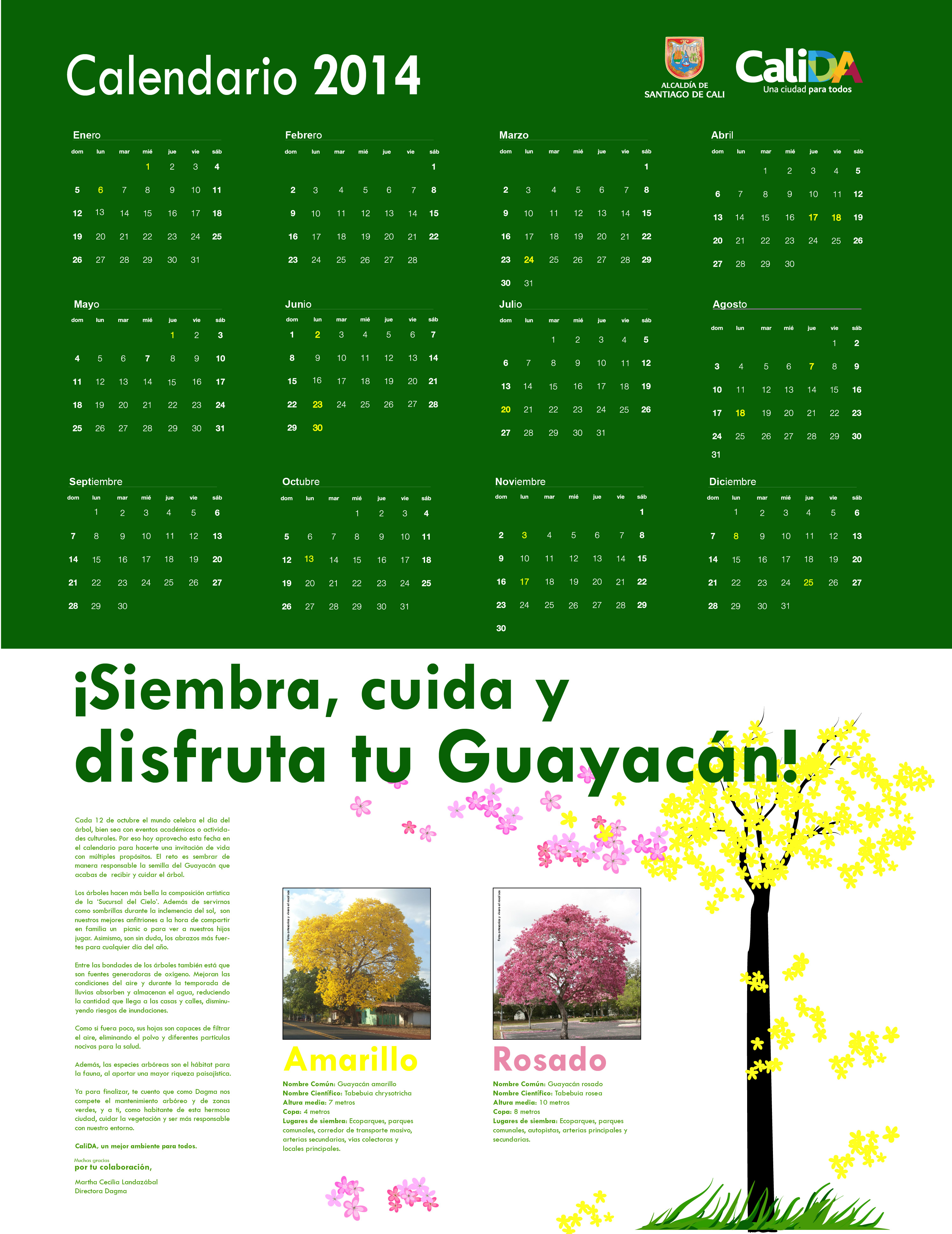 “Con el calendario tenemos una manera de recordar día a día que hay que cuidar nuestro medio ambiente, así como ser responsables con la semilla de guayacán que hoy recibimos”, dijo María, visitante de uno de los centros comerciales.