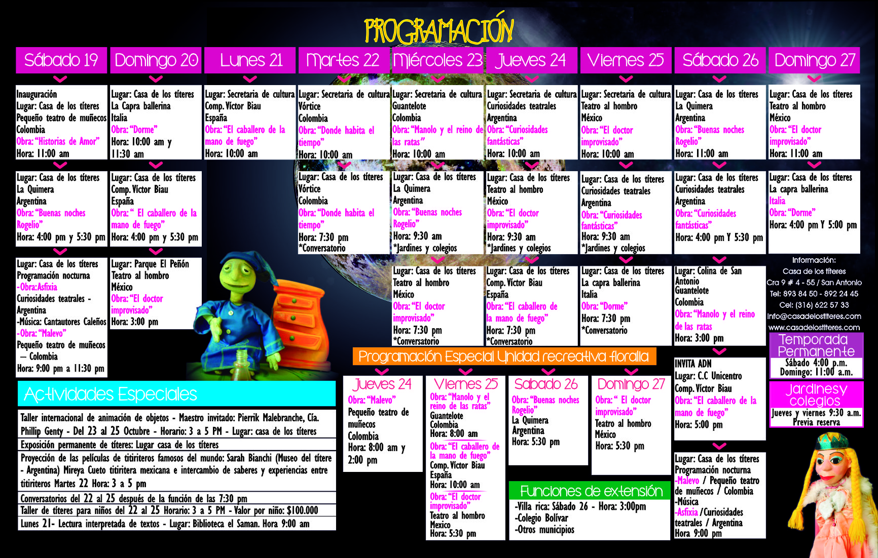 La secretaria de Cultura y Turismo de Cali, María Helena Quiñones Salcedo, señaló: “Un evento para disfrutar y gozar en familia, historias que conmoverán corazones, Muñecos que harán reír a un público adulto, en fin una variada programación que no se podrá perder el público caleño del 19 al 27 de octubre”.