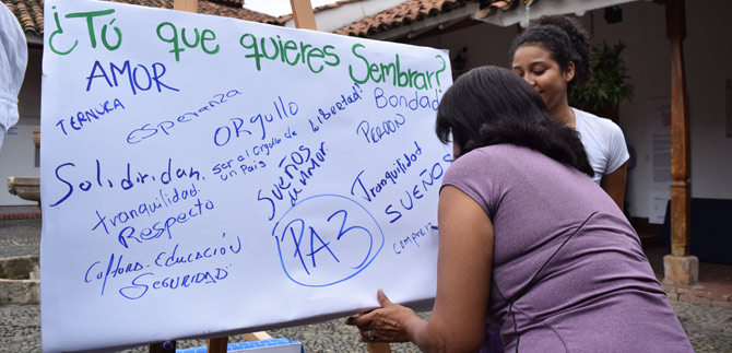 Para concluir la inauguración,  en un acto simbólico  quienes presenciaron este evento plasmaron en papel significativamente lo que querían sembrar para contribuir a la paz.