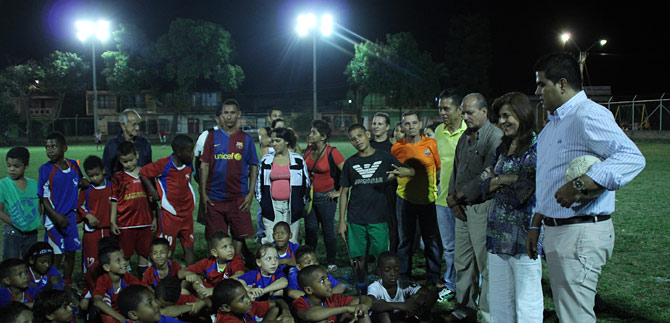 La secretaria de Gobierno Municipal, Laura Beatriz Lugo Marín, entregó en la noche de este miércoles 24 de septiembre más parques y zonas verdes con luz blanca, en la comuna 14, en el oriente de la ciudad.