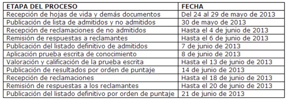 Las personas, que serán incorporadas a la planta de cargos del Municipio hasta el 31 de diciembre de 2013, deberán participar de un proceso cuyo cronograma es el siguiente: