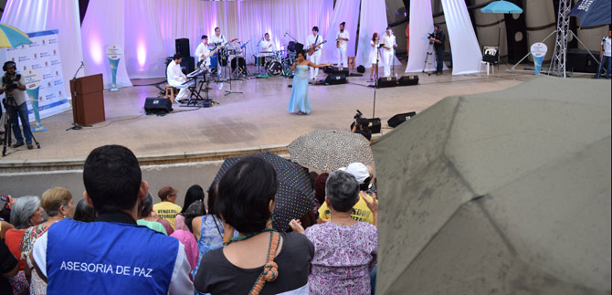 A pesar de la lluvia, los caleños asistieron al Teatro al Aire Libre los Cristales, donde se llevó a cabo un evento en conmemoración al Día Internacional de la mujer, denominado “Las Mujeres le Cantan a la Paz”, organizado por la Asesoría de Paz y la Secretaría de Cultura y Turismo.
