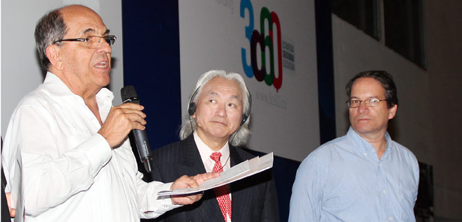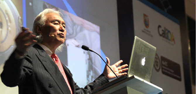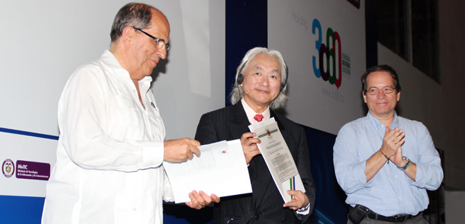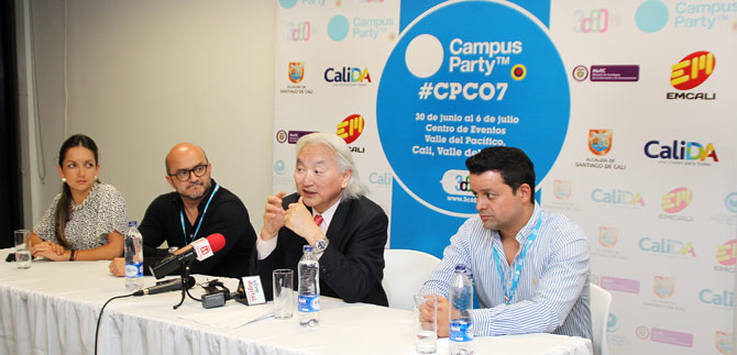 El físico norteaméricano de origen japonés Michio Kaku, luego de su conferencia magistral en el Campus Party, que en su 7 versión se realiza en el Centro de Eventos Valle del Pacífico, recibió de manos del alcalde de Cali, Rodrigo Guerrero Velasco, las llaves de la ciudad y el reconocimiento de más de 3000 jóvenes que hacen parte del encuentro.