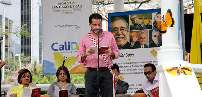 Desde un breve espacio, rodeado de un sinnúmero de mariposas amarillas, que revoloteaban al son de notas vallenatas en la imaginación de cientos de lectores y oidores, el mandatario caleño, la Cali literaria se arriesgaba a leer contados párrafos del libro que escribiera en Paris – Francia en enero de 1957, el hijo de Aracataca, de Magdalena, de Colombia, de Latinoamérica, ¡qué va! del mundo.