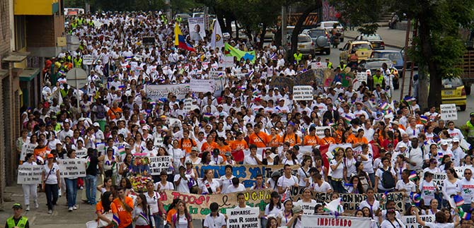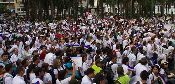 Con múltiples carteles cargados de mensajes que invitaban al desarme, al amor fraterno, a la paz y la convivencia pacífica, más de 15.000 caleños marcharon en contra de la violencia, invitados por la Arquidiócesis y la Alcaldía de Cali.