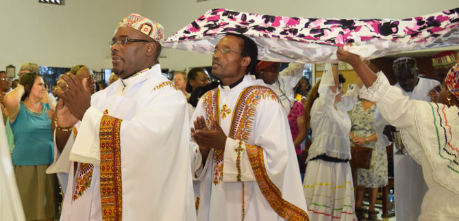 Con ofrendas de frutas, pan y vino, además de cantos típicos afrodescendientes fue celebrada la misa que dio inicio oficial a la semana de la afrocolombianidad en Cali.