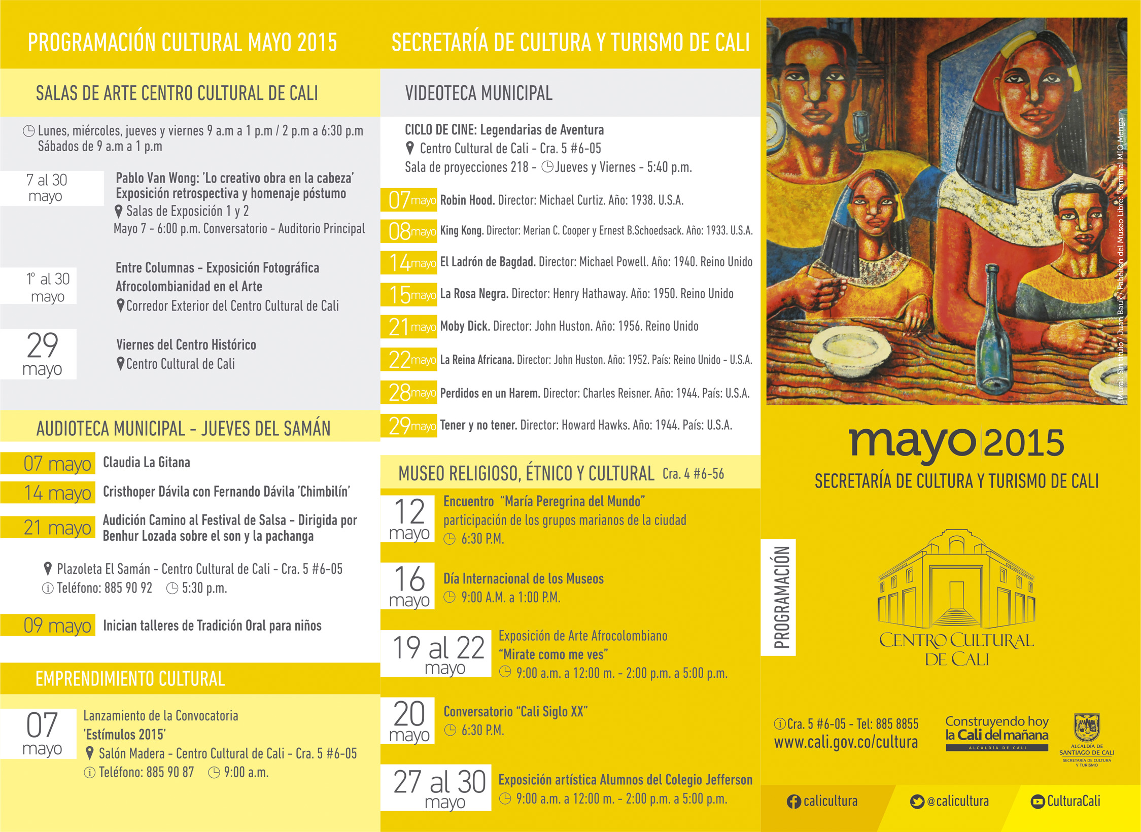 Amplia, variada y con énfasis en el reconocimiento a la herencia africana es la programación que ofrece la Secretaría de Cultura y Turismo de Cali, la Asesoría para Asuntos Étnicos y Afrodescendientes y el Ministerio de Cultura, a caleños y visitantes durante el mes de mayo.