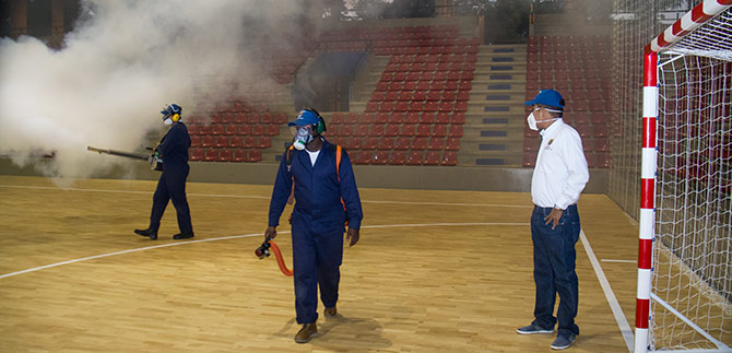 El secretario de Salud de Cali, Alexander Durán, encabezó los operativos de fumigación e intervención de sumideros para evitar la proliferación del zancudo en los escenarios del Mundial de Fútsal en Cali. La jornada tuvo lugar en el coliseo El Pueblo, sede principal de las competencias, pero igualmente en los coliseos alternos como el de la Universidad del Valle y Mariano Ramos.